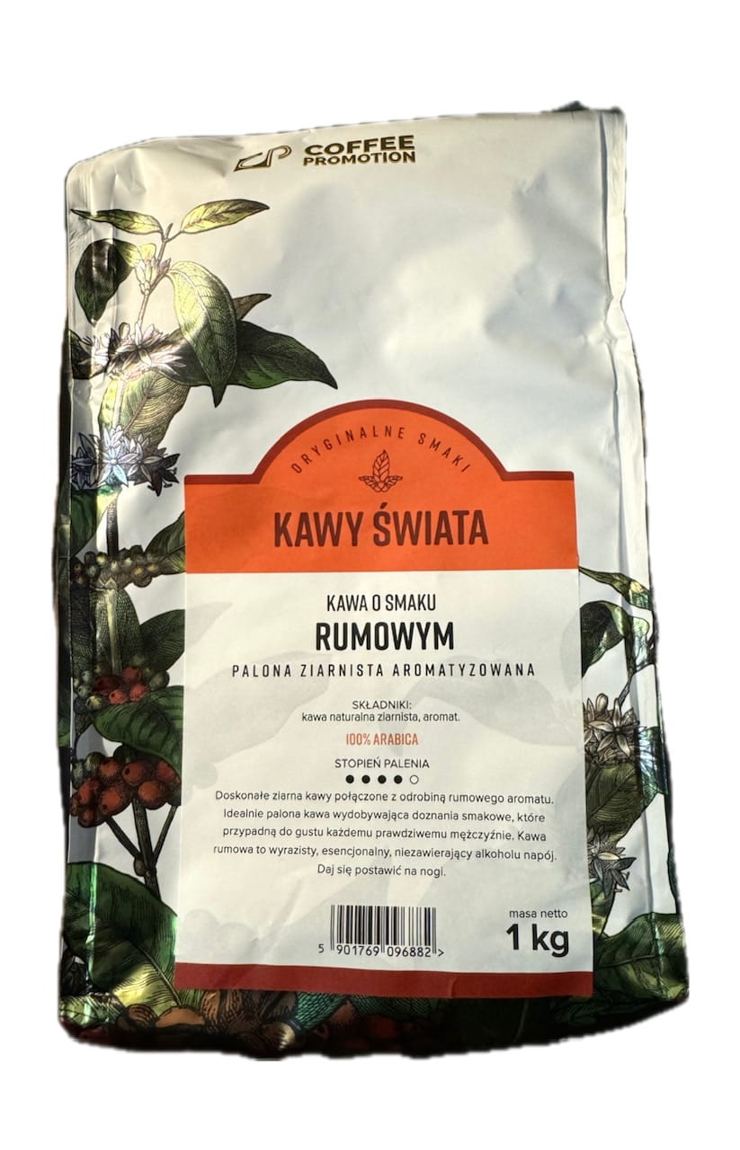 Ziarna kawy połączone z odrobiną rumowego aromatu. Kawa o wyrazistym, esencjonalnym smaku.